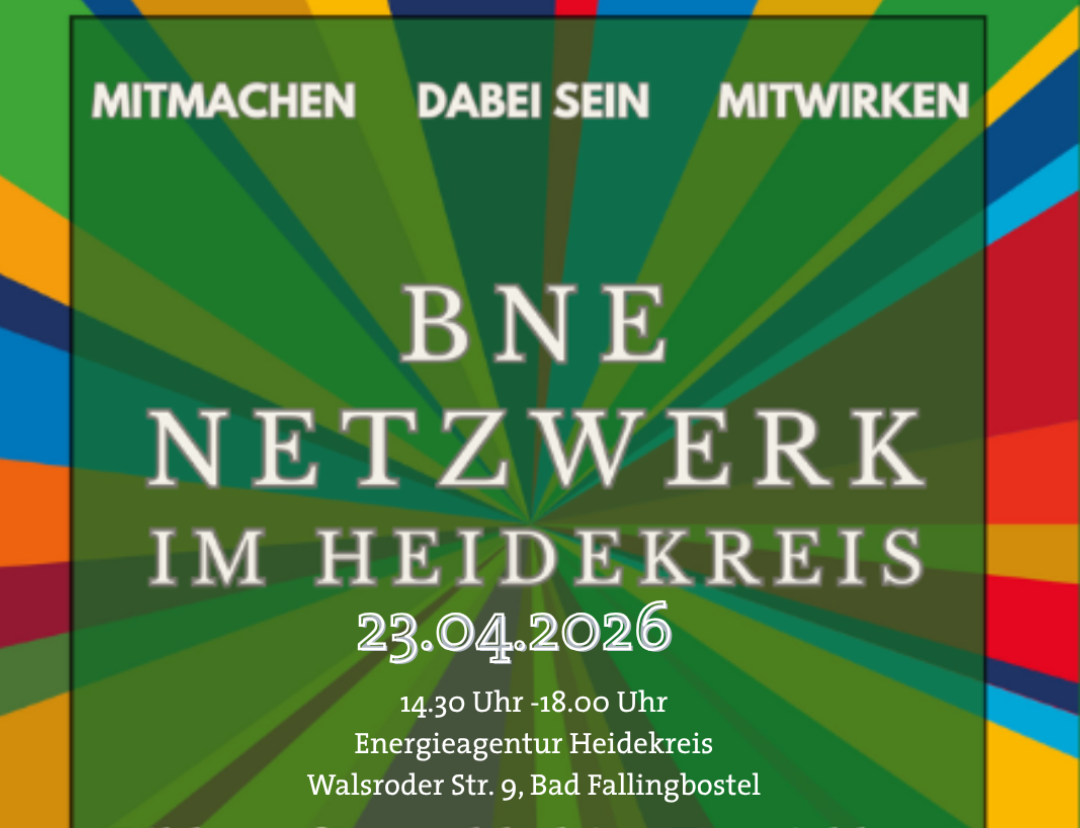 Das BNE-Netzwerk (Bildung für nachhaltige Entwicklung) trifft sich am Donnerstag, dem 23.04.2026, bei der Energieagentur Heidekreis in Bad Fallingbostel.